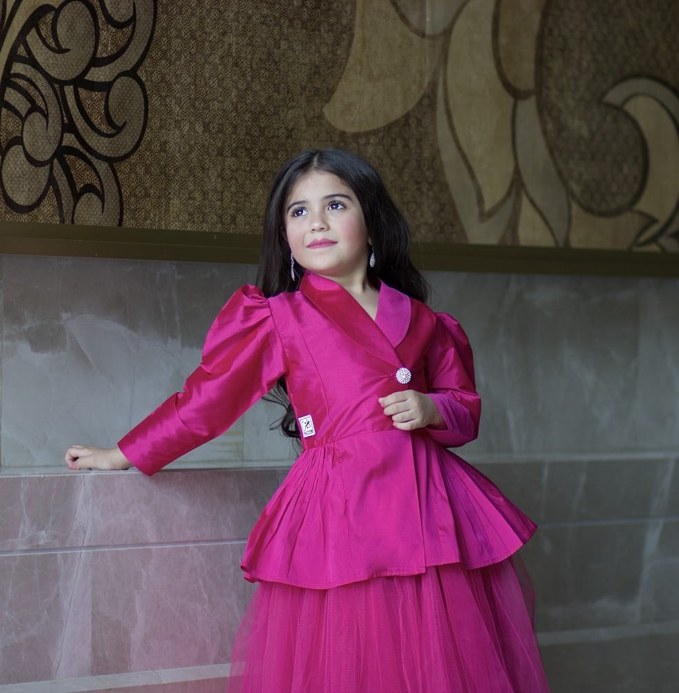 متكون من قطعتين جاكيت بقصه مميزه و بااكمام منفوخه